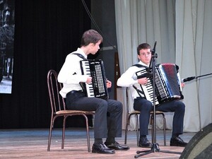 Ведущие концертной программы — учащиеся школы Иващенко Руслан и Зайцев Кирилл.