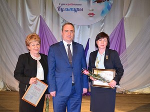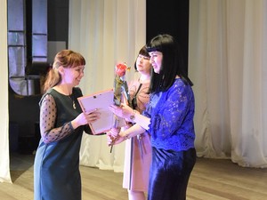 Начальник отдела культуры Элеонора Морозова вручила грамоты и благодарности отдела культуры Ткаченко Алексею Владимировичу – преподавателю духовых инструментов высшей квалификационной категории и концертмейстеру Волковой Анне Анатольевне.